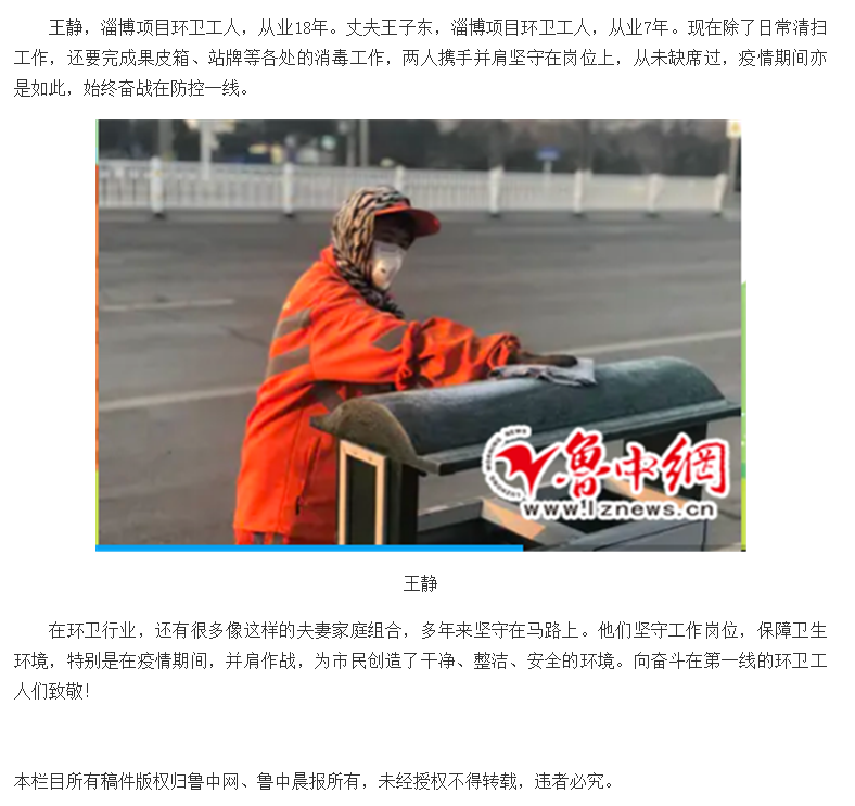 疫情防控下的淄博環衛工:從城市“美容師”到群眾的“守護者”