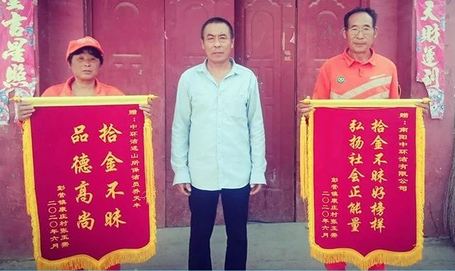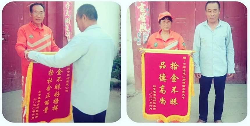 用專業(yè)守護環(huán)境,用真誠守護美好。近日,鎮(zhèn)平縣遮山鎮(zhèn)的一位村民帶著兩面分別印有“拾金不昧,品德高尚”、“拾金不昧好榜樣,弘揚社會正能量”的錦旗到南陽中環(huán)潔遮山掃保所尋找環(huán)衛(wèi)工人喬天豐,要向他及南陽中環(huán)潔公司致謝。